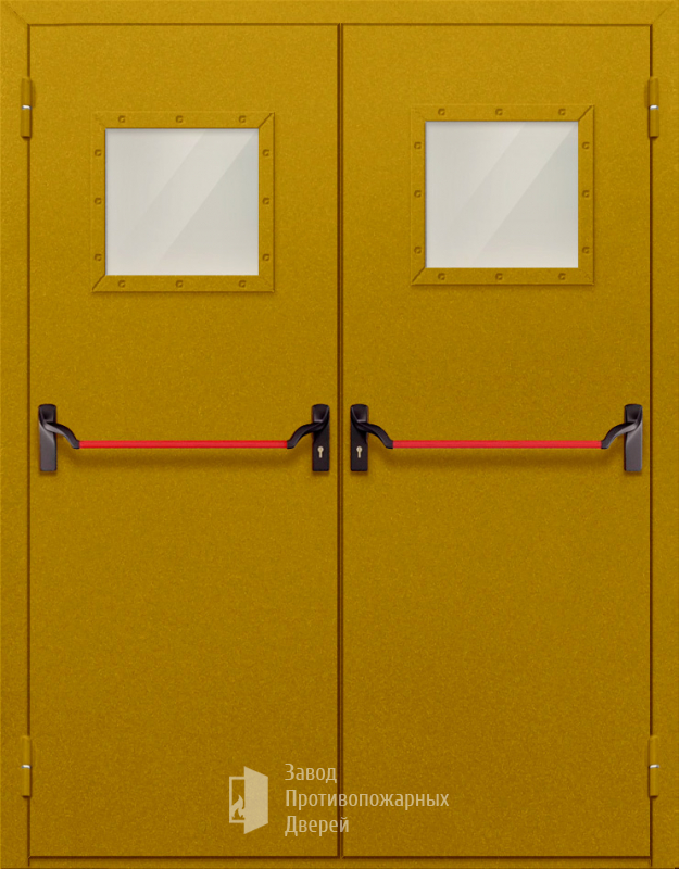 Маркировка Противопожарная Двупольная дверь с квадратным стеклом ДПМ-02-EIW60 с антипаникой