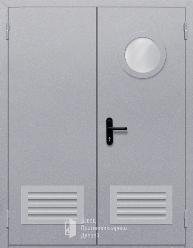 Маркировка Противопожарная Двупольная дверь с круглым стеклом ДПМ-02-EIW60 с решеткой