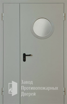 Противопожарная Полуторная дверь с круглым стеклом ДПМ-02-EIW30 с решеткой |