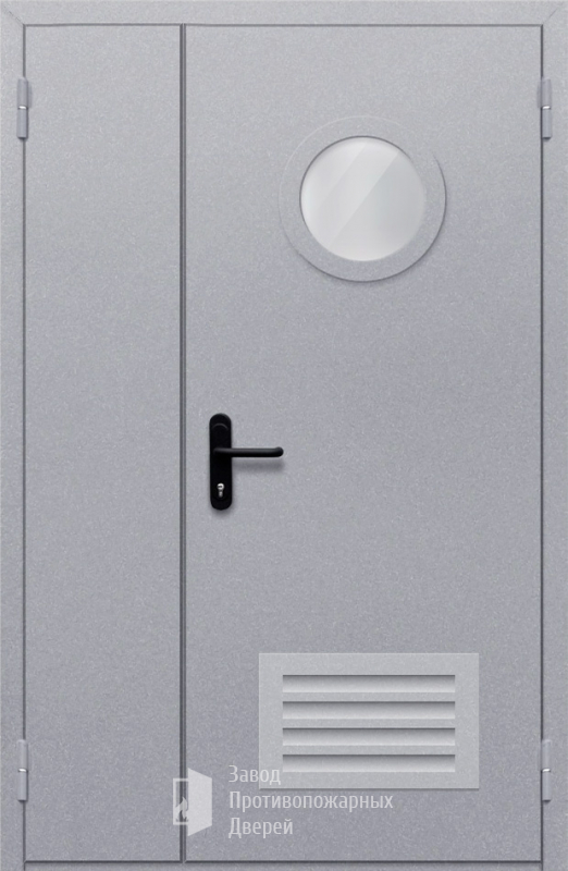 Маркировка Противопожарная Полуторная дверь с круглым стеклом ДПМ-02-EIW60 с решеткой