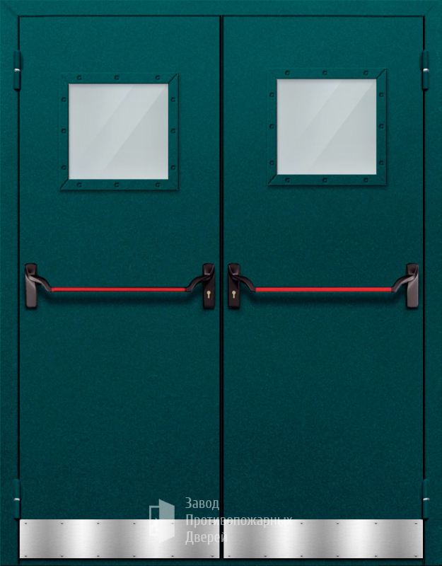 Маркировка Противопожарная Двупольная дверь с квадратным стеклом ДПМ-02-EIW60 с антипаникой